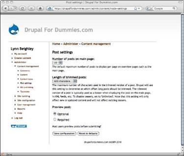 [REMEMBER] The tweaks and settings discussed in this chapter apply to both Basic pages and Articles. They also apply to other node types, including polls, blog posts, and forum posts I discuss in Chapter 9.
